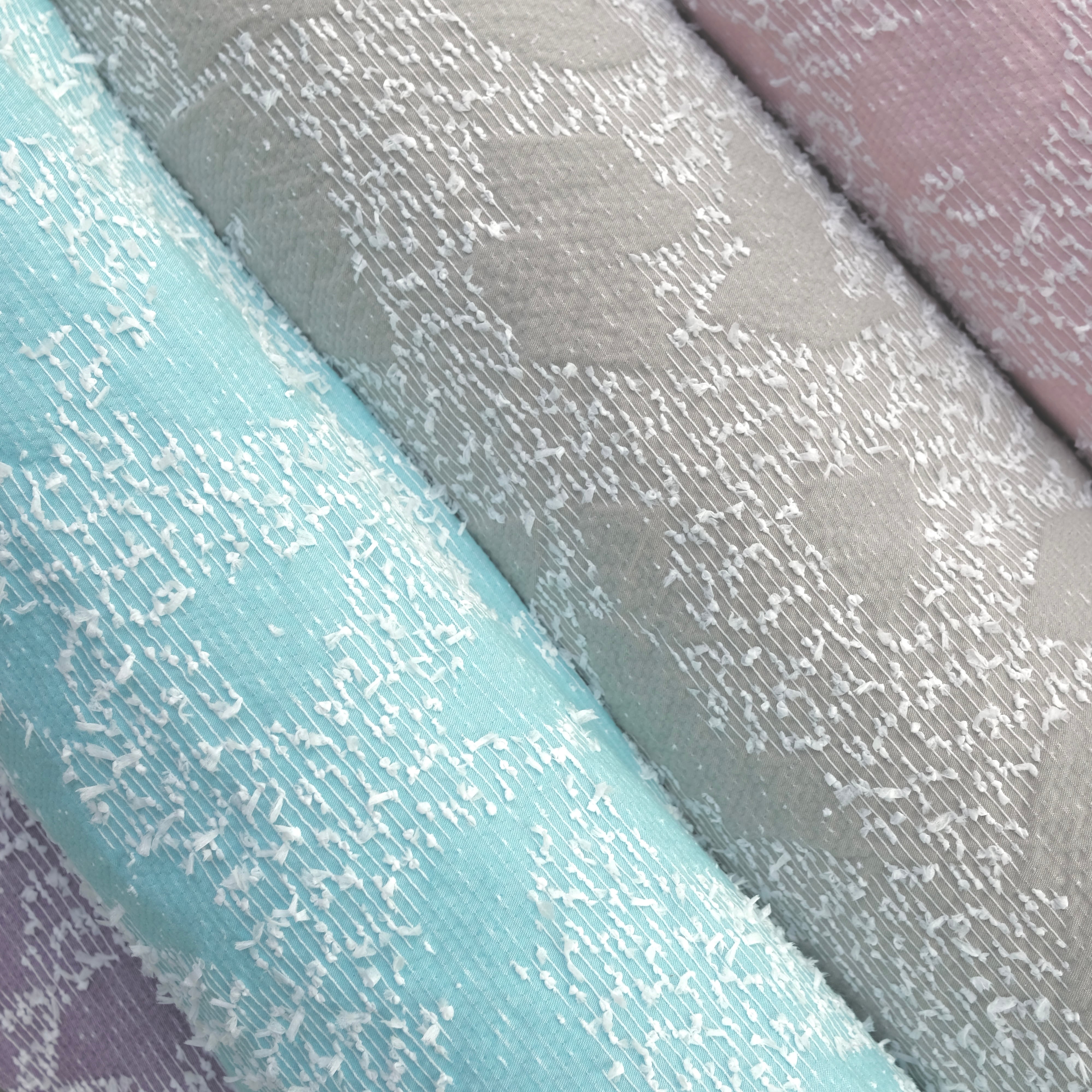 ナイロンの意匠糸を贅沢に織り込み、葉の模様を立体的に浮かび上がらせた生地です。