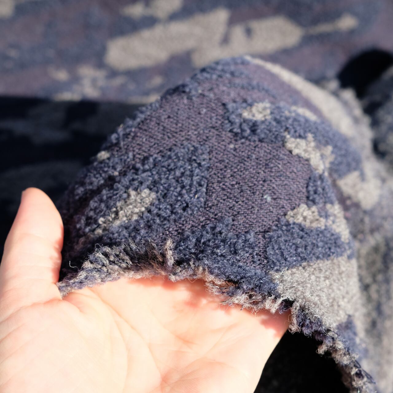 この生地は、緯糸にウールとアルパカを含むことで、見た目以上にふんわりとした軽さと柔らかい触り心地が特徴です。
